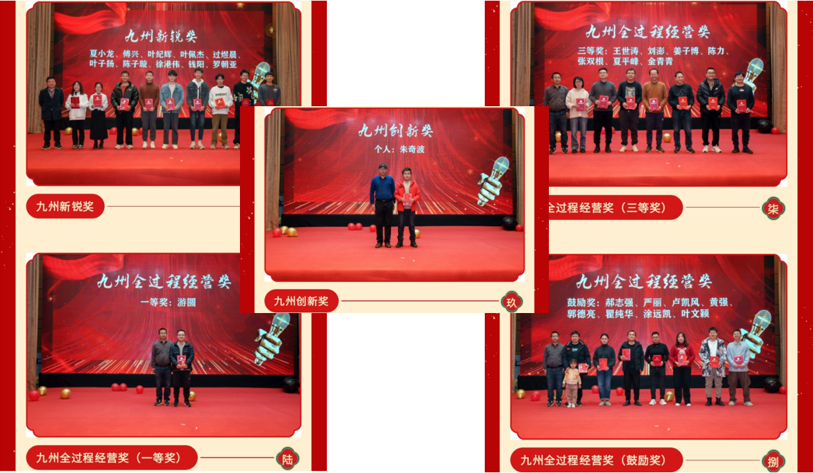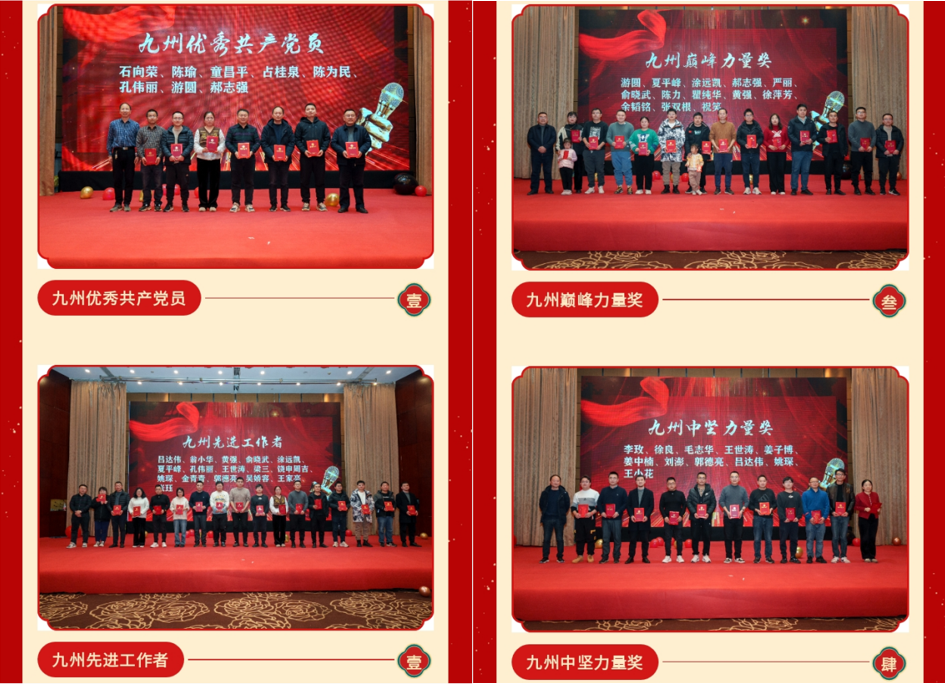 年會(huì)首項(xiàng)給優(yōu)秀部門(mén)和優(yōu)秀員工頒獎(jiǎng)。他們以平凡的勞動(dòng)為公司創(chuàng)造了不凡的成果,用優(yōu)異的業(yè)績(jī)?yōu)楣緞?chuàng)下奇跡。九州優(yōu)秀共產(chǎn)黨員、九州先進(jìn)工作者、九州巔峰力量獎(jiǎng)、九州中堅(jiān)力量獎(jiǎng)、九州新銳獎(jiǎng)等等獎(jiǎng)項(xiàng)一一揭曉,他們是全體九州人學(xué)習(xí)的榜樣!