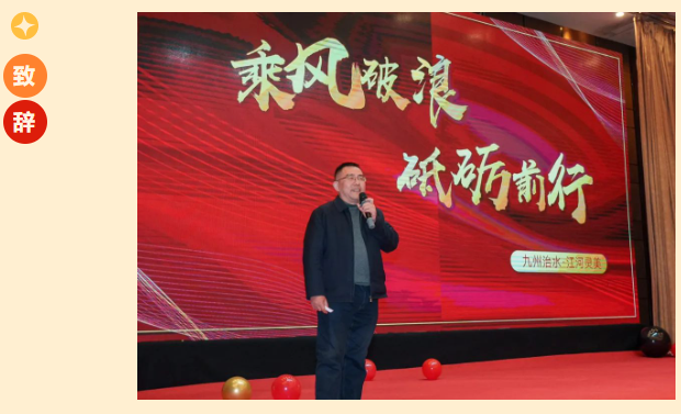2023這是特殊的一年,是完滿的一年,公司營(yíng)業(yè)收入再創(chuàng)歷史新高。相信對(duì)于我們九州治水來(lái)說(shuō),2024也必將是爆發(fā)的一年。公司黨支部書(shū)記、董事長(zhǎng)石向榮先生首先感謝全體九州人過(guò)去一年的幸苦耕耘,過(guò)往皆是序章,2024年我們將立足當(dāng)下繼續(xù)出發(fā)。2023年是公司成立二十周年,公司從成立時(shí)的十幾人到如今的百人,曾經(jīng)共同創(chuàng)業(yè)的同事們?nèi)栽诂F(xiàn)場(chǎng)并見(jiàn)證公司的成長(zhǎng),感觸良多,同時(shí)也感謝今天現(xiàn)場(chǎng)所有員工對(duì)九州的信任與付出,以及所有家屬背后的默默支持。
